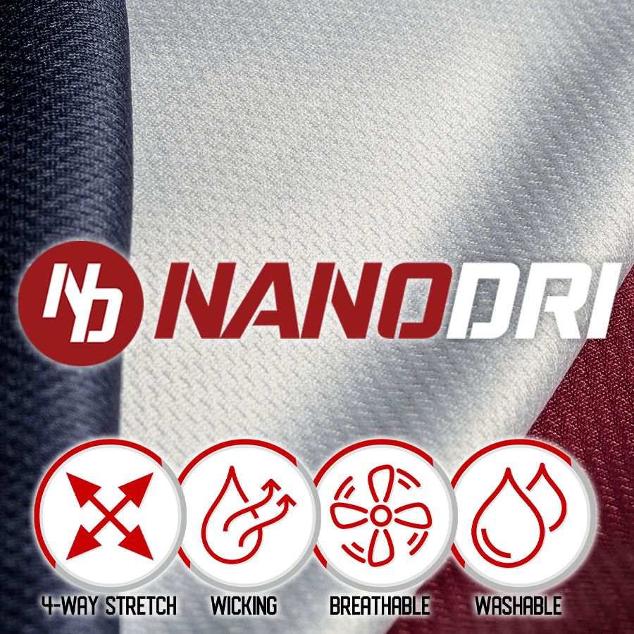 • Moisture-wicking, four-way stretch performance NanoDri Fabric