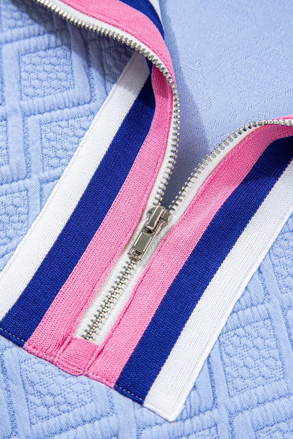 The vibrant pop of color on the collar adds a playful touch to the classic striped pattern, creating a unique and eye-catching look.