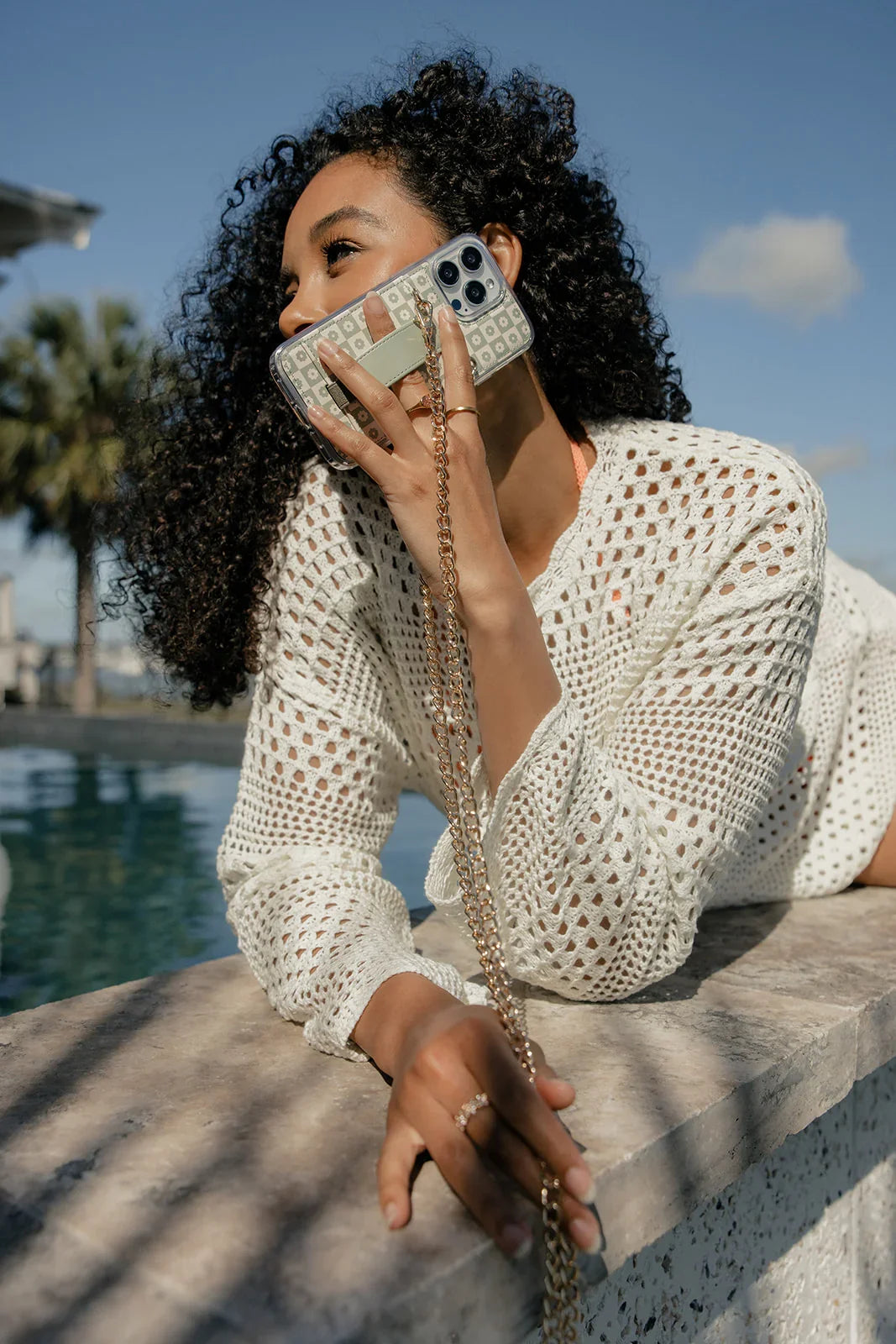 Pair this case with the coordinating Blooming Check wrist lanyard and Apple watch band!