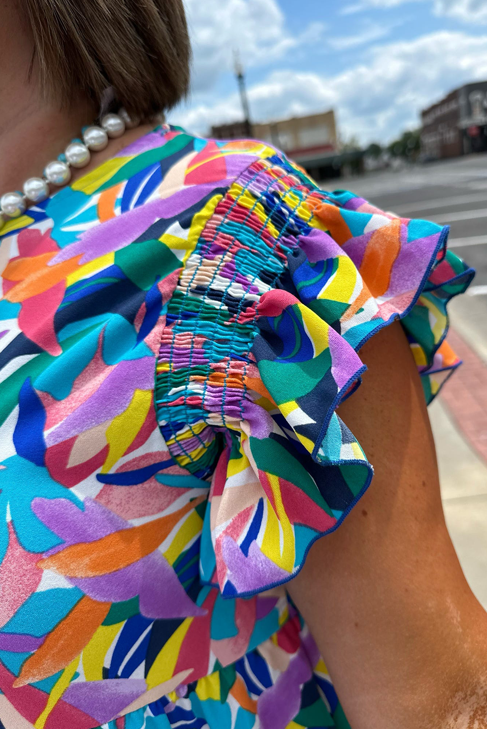 • Featuring delicate ruffle sleeves and shirred detailing, this dress offers a flattering and comfortable fit for plus-size women, accentuating curves while providing a breezy silhouette.