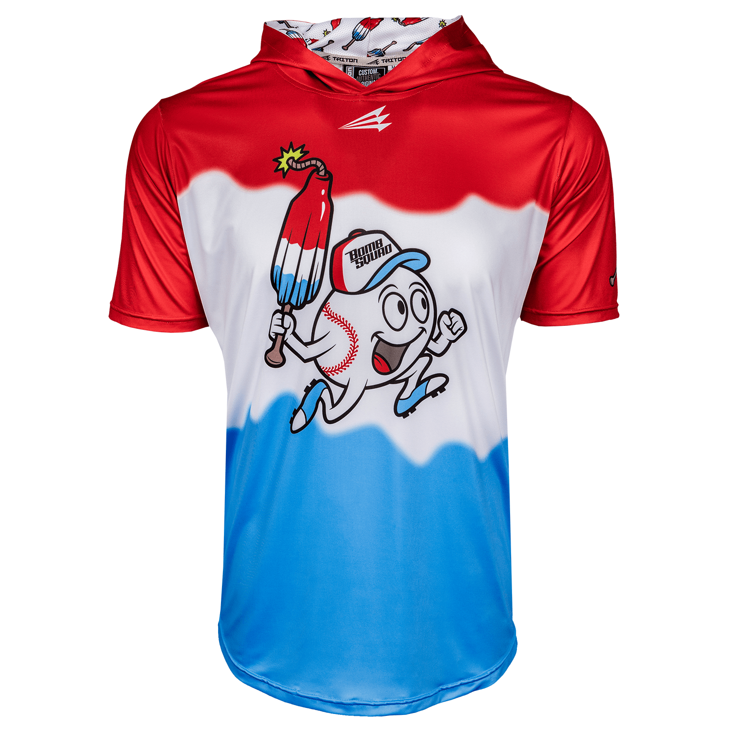 Rep the official popsicle of Summertime with our Bomb Squad Bomb Pop Short Sleeve Baseball Hoodie. The Bomb Squad is here to bring some pop to the baseball diamond.