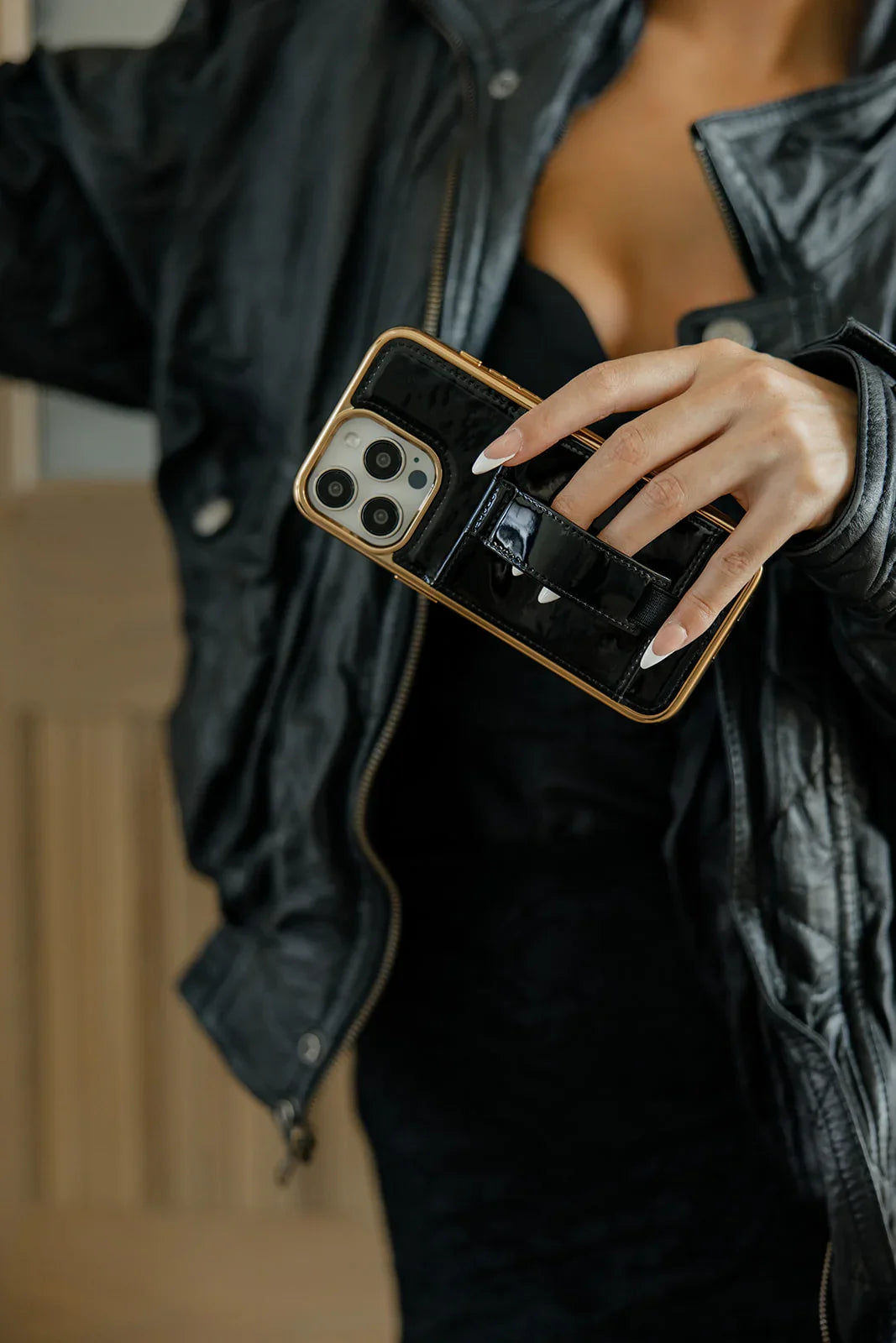 Case Design: Black patent leather with gold casing