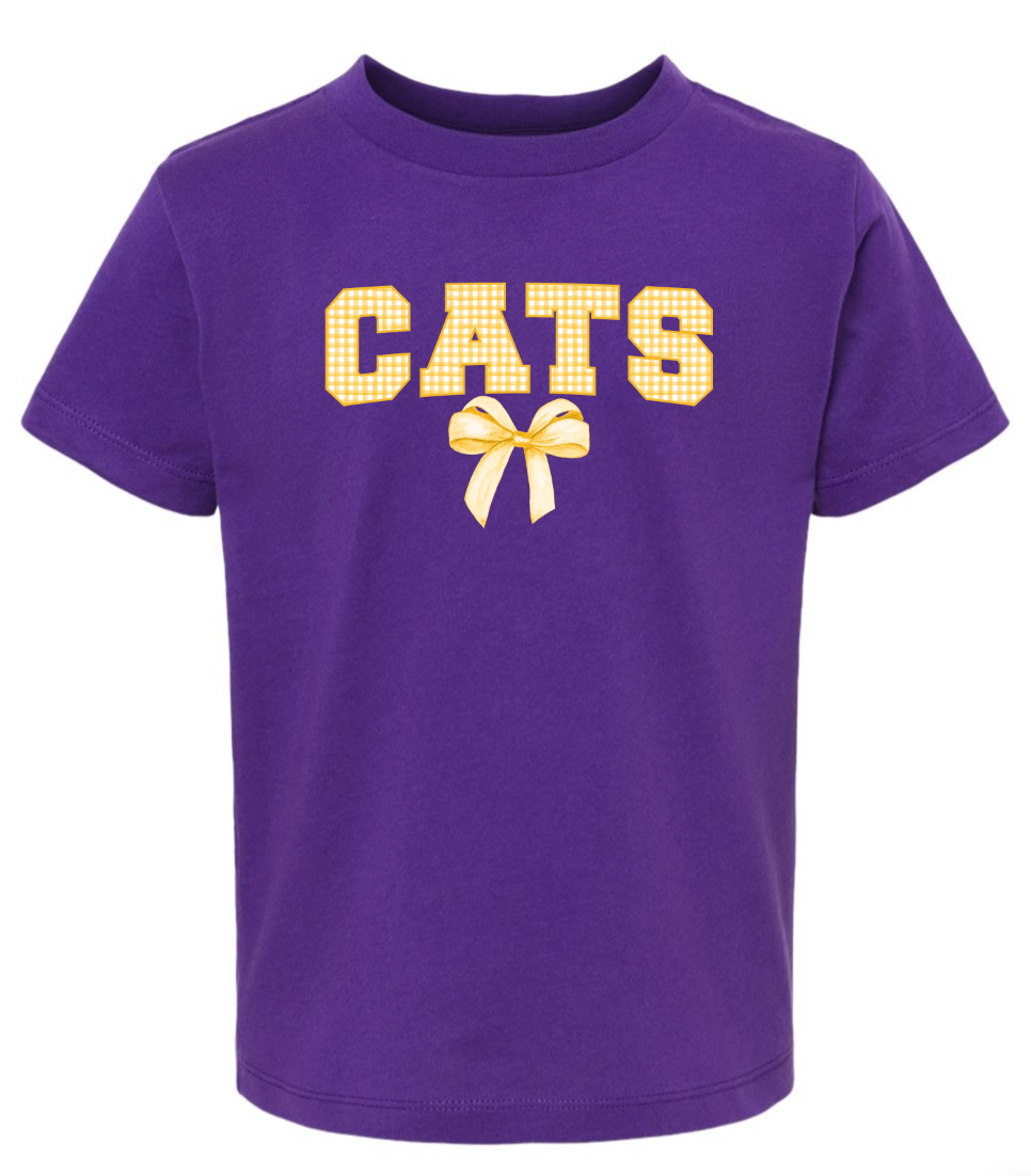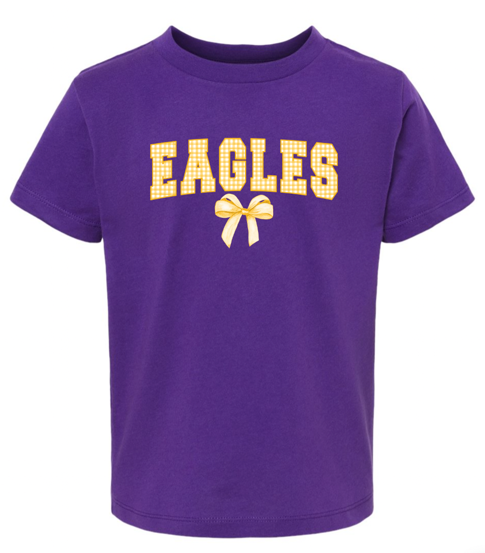 Gingham Mascot name with Coquette bow on Bella Canvas Tshirt