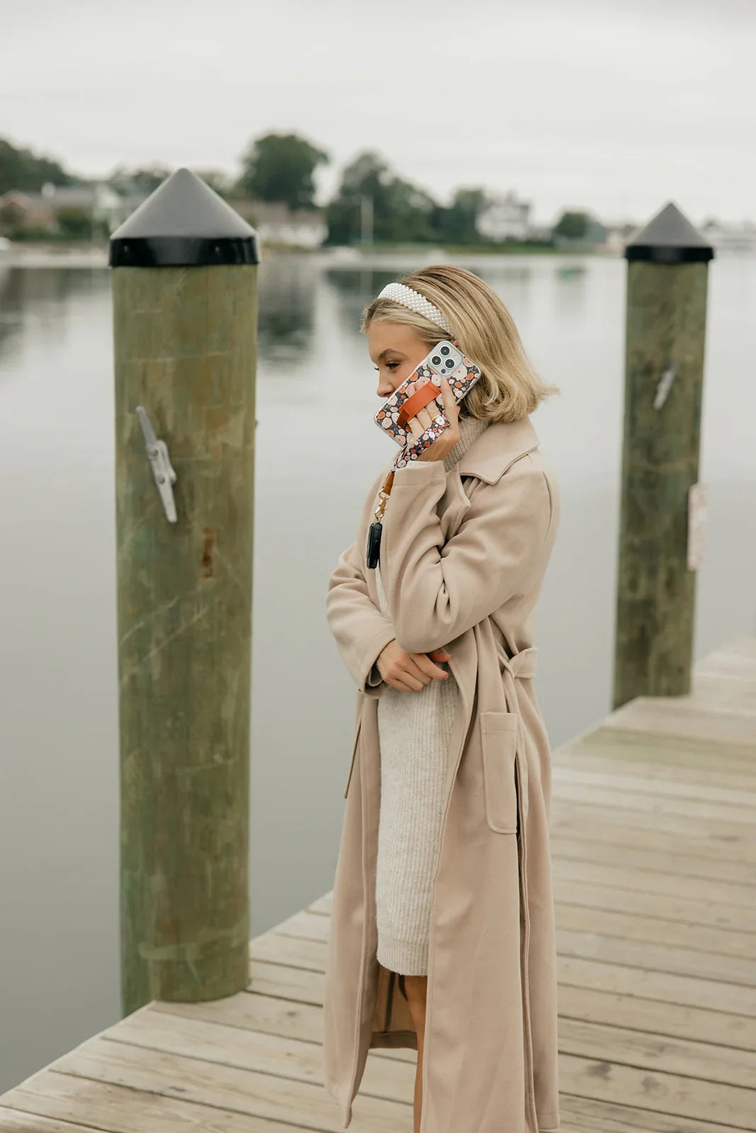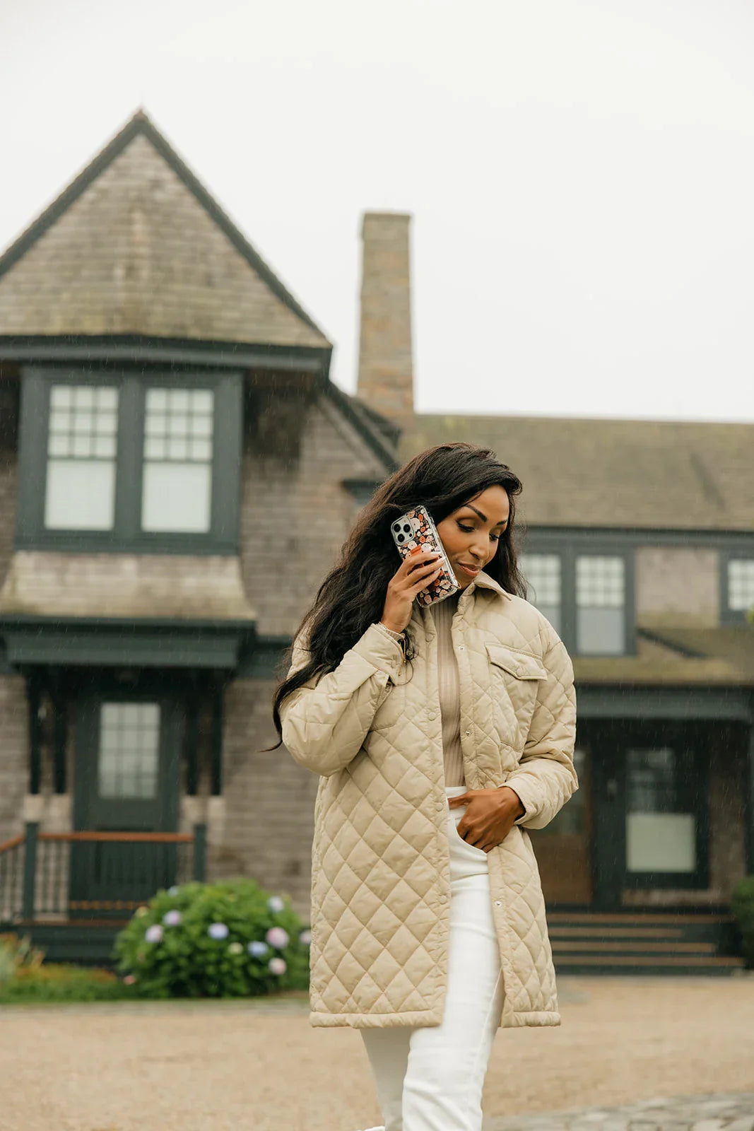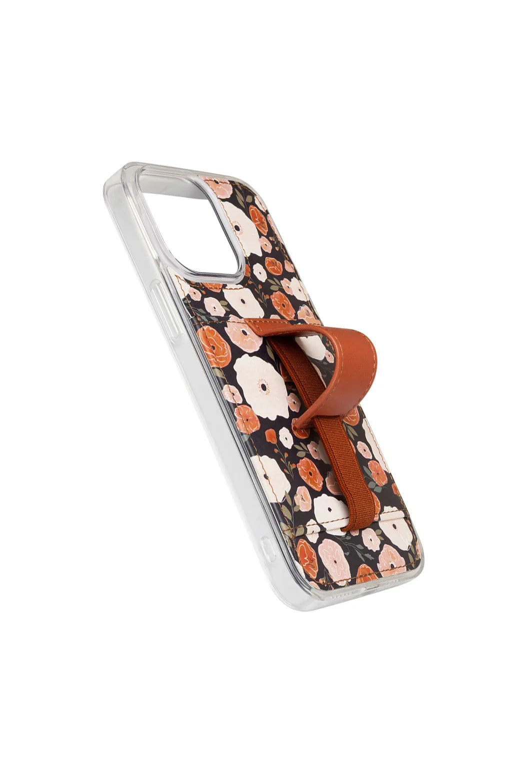 Case Design: Dark navy background with pink and rust flowers