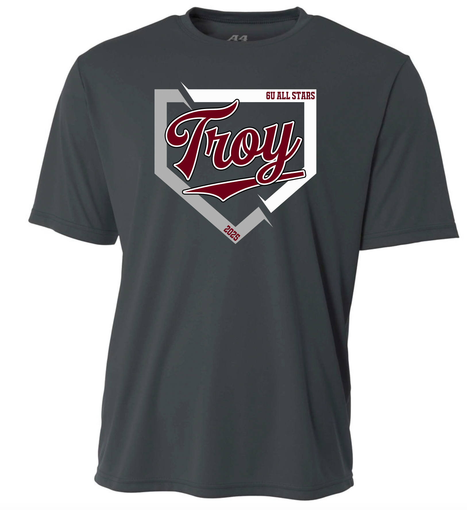 Troy 6U All Star designs on either A4 cooling performance shirt (graphite) or Next Level Festival Muscle Tank or Tshirt (charcoal).